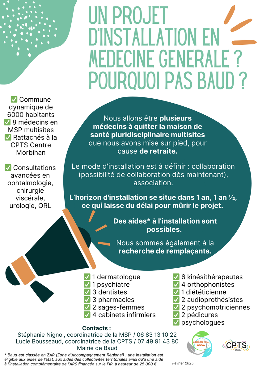 📢 Un projet d'installation en médecine générale ? Pourquoi pas Baud ?